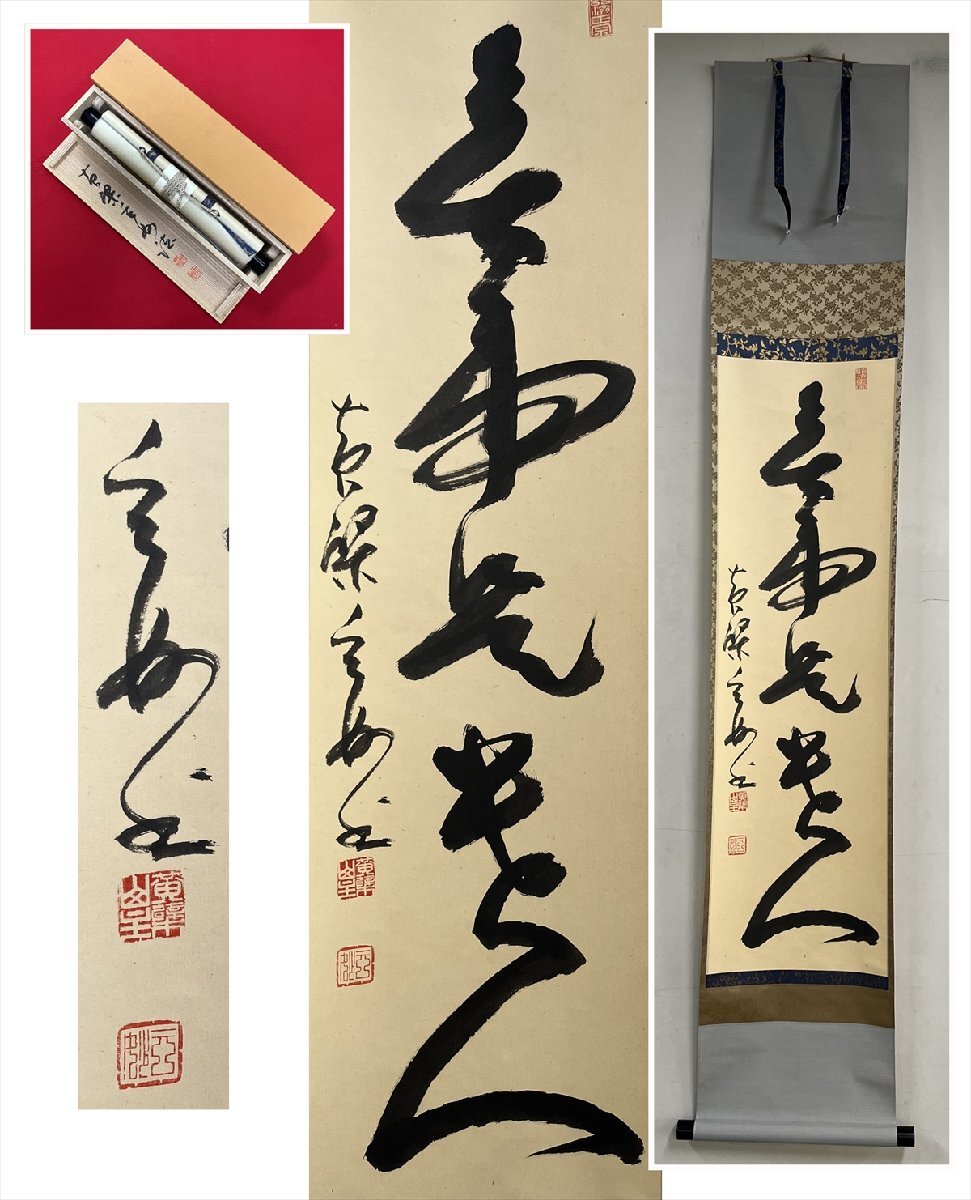 - 【千寿】黄檗宗 萬福寺 村瀬玄妙 無事是貴人一行書 紙本 B1587◆箱 在銘 季節掛 茶掛 掛軸 掛物 茶道具