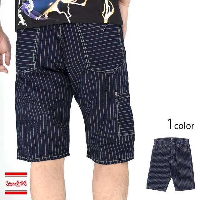 - FICTION ROMANCE 9oz. ウォバッシュストライプ ジップフライショーツ◆SUGER CANE ネイビー 34インチ 34inch SC51443 シュガーケーン