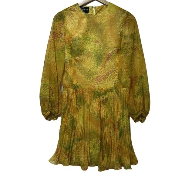 > ピエールカルダン pierre cardin サイズ9 M - ダークイエロー×イエロー×マルチ レディース 長袖/ロング/プリーツ/シースルー ワンピース