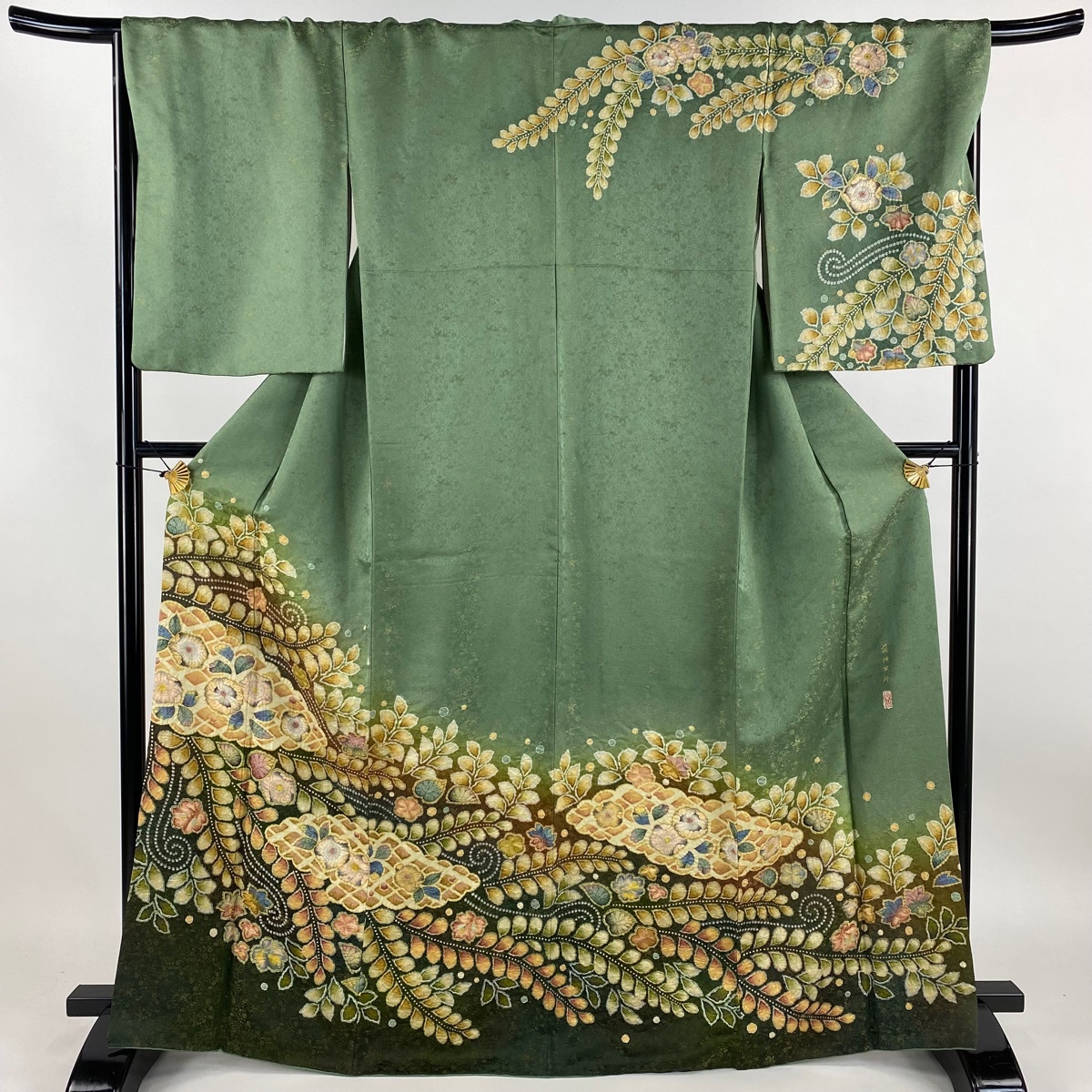 - 【在庫一掃】 訪問着 身丈167cm 裄丈69cm L 袷 翠山工房 落款 辻ヶ花 金通し ぼかし よもぎ色 正絹 美品 逸品 【中古】
