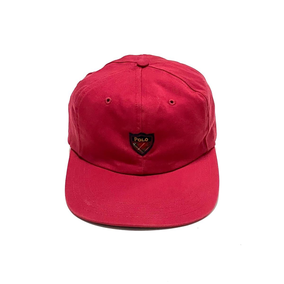 - アメリカ製 ポロ ラルフローレン コットン ベースボール キャップ ダッド レッド 赤 刺繍 帽子 90’s 90年代 ヴィンテージ made in USA