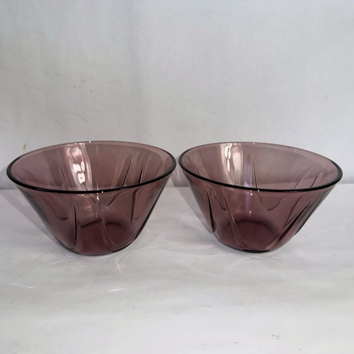 > 小鉢 2個セット 2枚 ボウル皿 ガラス 紫 前菜 アイス デザート かき氷 食器 昭和レトロ ヴィンテージ アンティーク 長期保管品 Ma R7717