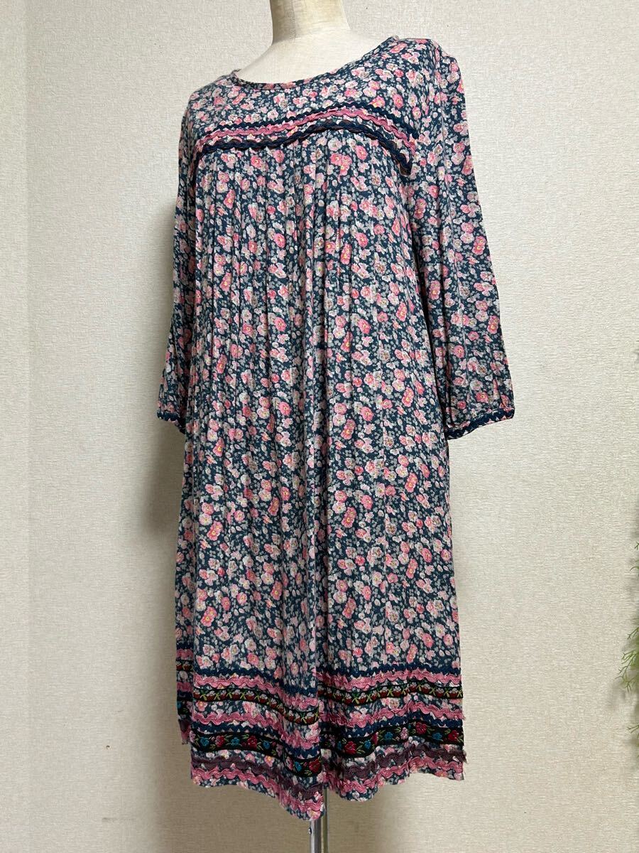 - 【Anather Edition★アナザーエディション】レーヨン花柄ワンピース・七分袖丈程度・ワンサイズ