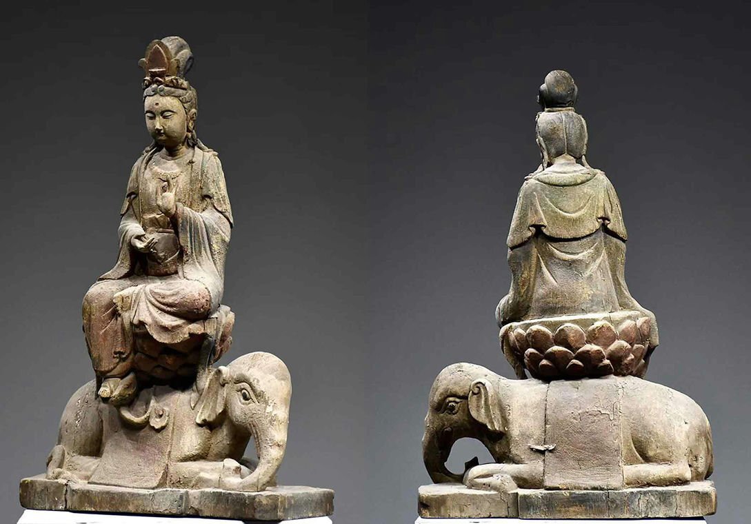 - ■観心・時代旧蔵■C4187明時代 楠木普賢菩薩造像 楠木細工彫刻★仏教古美術★仏像★細密細工★廃寺旧蔵★廃寺買出品