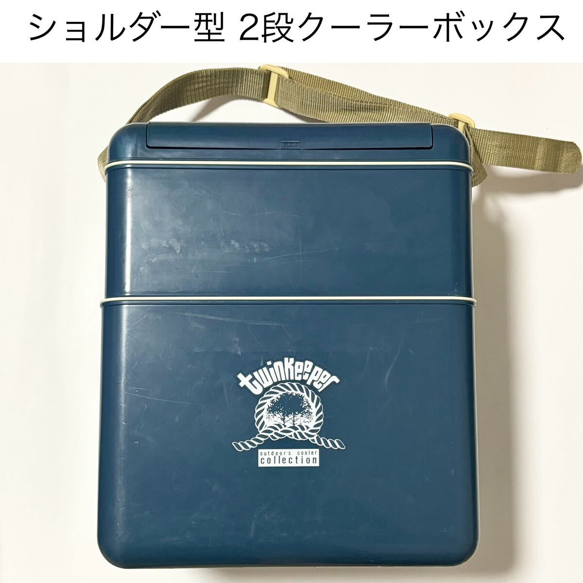 - 2段ハードクーラーボックス 60L ネイビー カトラリー付き ショルダー型 紺色
