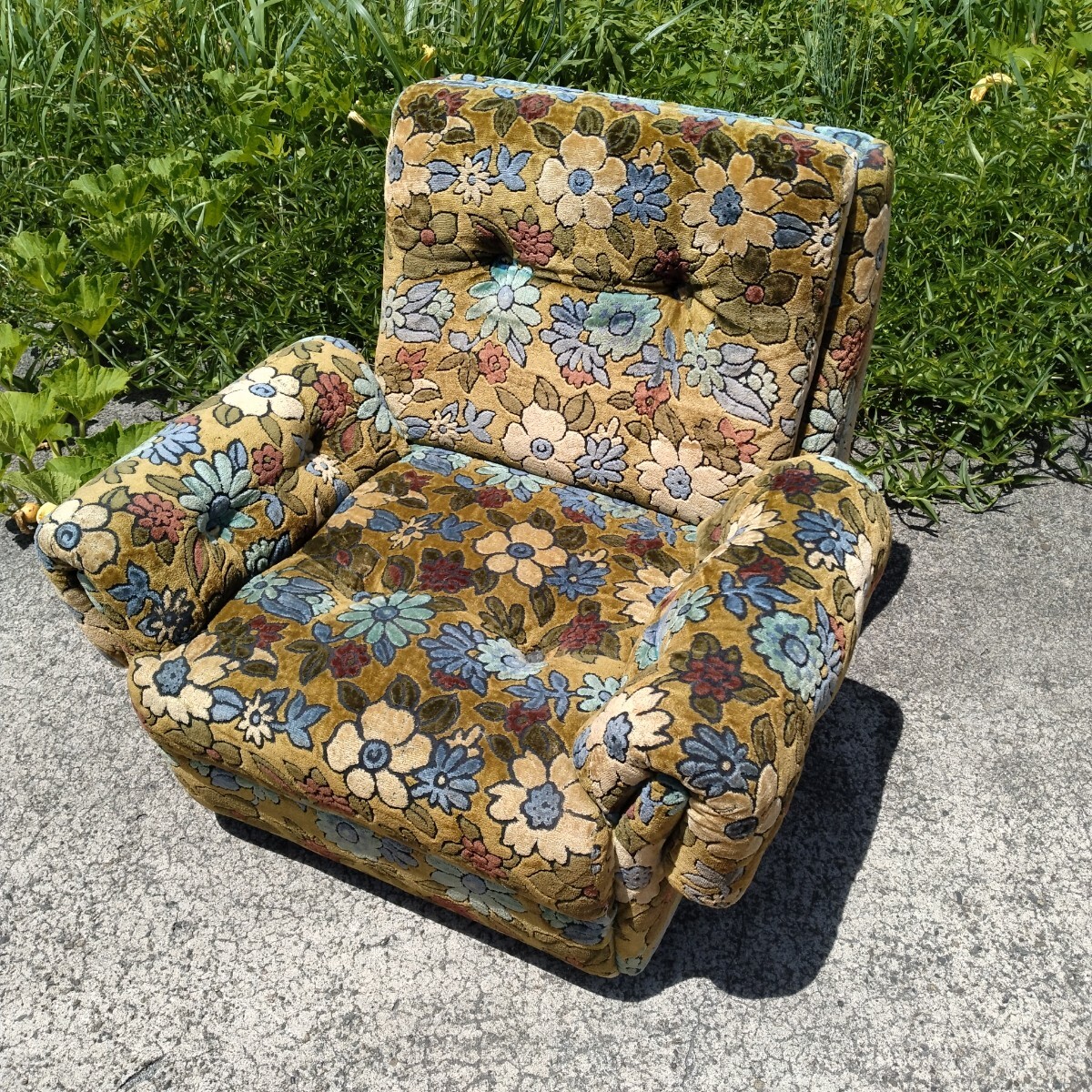 - 希少 昭和レトロ レトロポップ ソファー 1人掛け 花柄 当時物 蔵出し w880×d830×h740㎜ ②