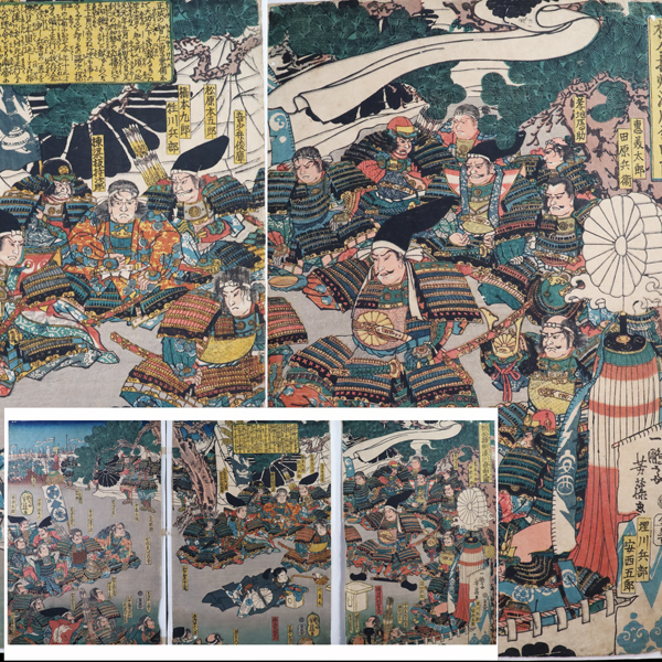 - ◇雅◇ 真作保証 歌川芳藤 「楠公攝州湊川向之圖」 木版画 浮世絵 錦絵 戦争絵 武者絵 摺物 3枚続 川中嶋大合戦 /MG.25.7 [K60.5] PU12