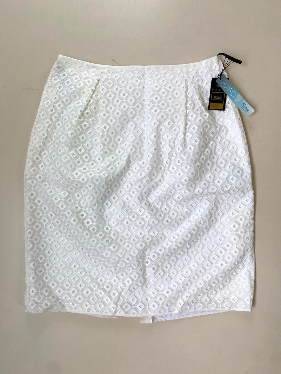 - ● 未使用 INED *繊細なアイレットレース* ナロー スカート 白 サイズ9 ◆ 下げ札付き ひざ下丈 イネド ◆W3 UゆHI3-20