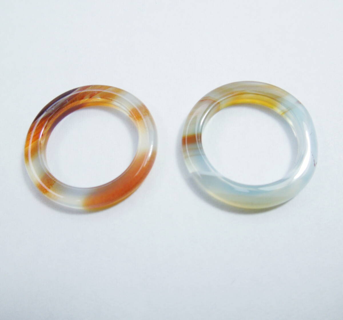 > S11 メノウリング 2点 約8.75号 橙 水色系 瑪瑙指輪 くりぬきリング 約9号弱 ライトブルー オレンジ 橙色 水色 めのう くり抜きリング