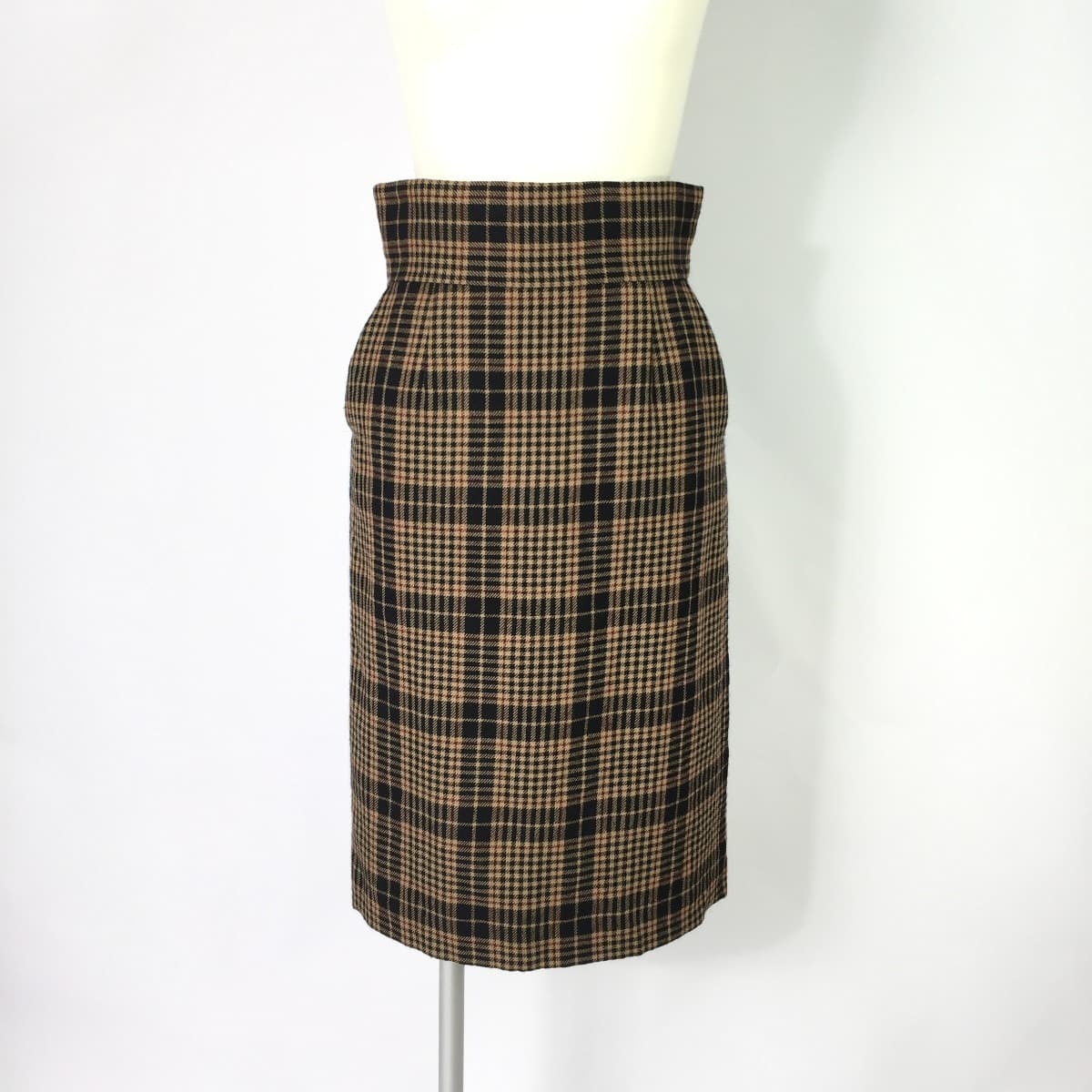 コメント:大胆なチェック柄が可愛いタイトスカート。すらっとしたシルエットで大人女子にピッタリなデザイン。ハイウエストなので、トップスインしてきるのがオススメです。