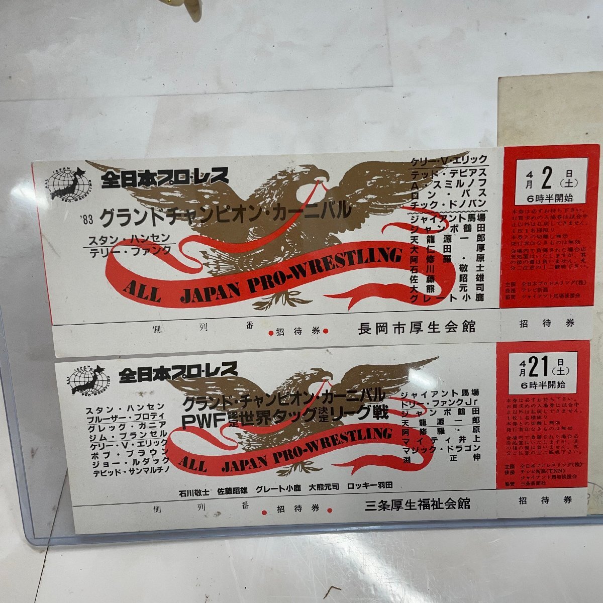 > ♭M♭ 全日本プロレス 観戦チケット 3枚 スタン・ハンセン ジャイアント馬場 ジャンボ鶴田 ケリー・V・エリック ♭J-250721