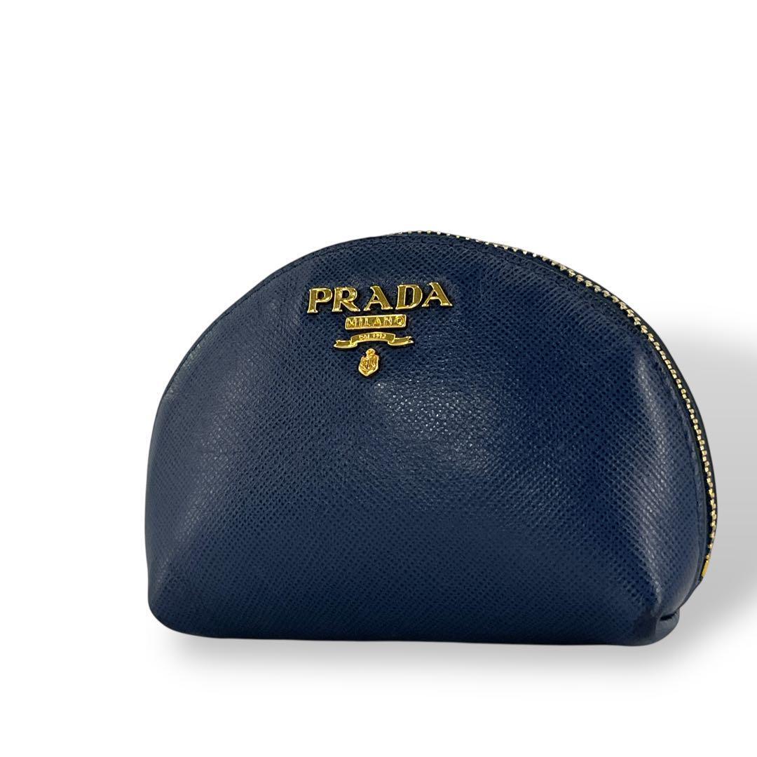 > PRADA プラダ コインケース サフィアーノメタル ゴールドロゴ 小銭入れ ブルー レザー ゴールド金具 青