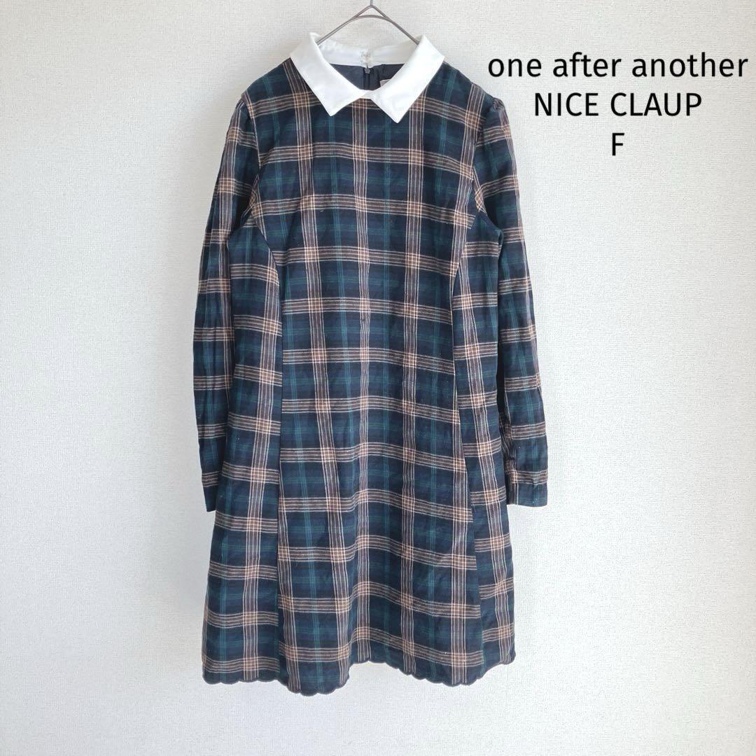 - ナイスクラップ タータンチェック襟付きワンピース【F】スカラップカット 波型