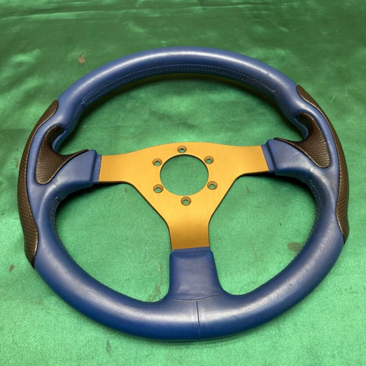 - ステアリング ハンドル 35パイ ブルー イタリア製 レザー ヴィクトリア ? スポーツ スポコン GTドリフト R71423