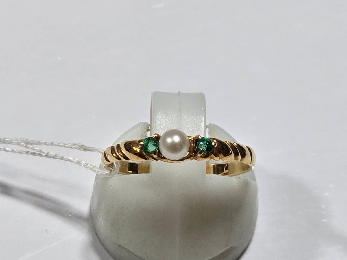 - ★可愛い■オシャレ■指輪■即決■パール/エメラルド■K18■1.2g■11号■中古品■