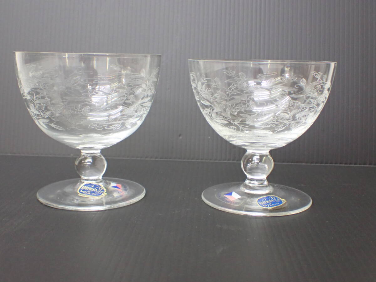 > 218-;(ガラス) ボヘミア BOHEMIA カクテル グラス おまとめ2客 草文 高さ;約7.7×径;8cm ★