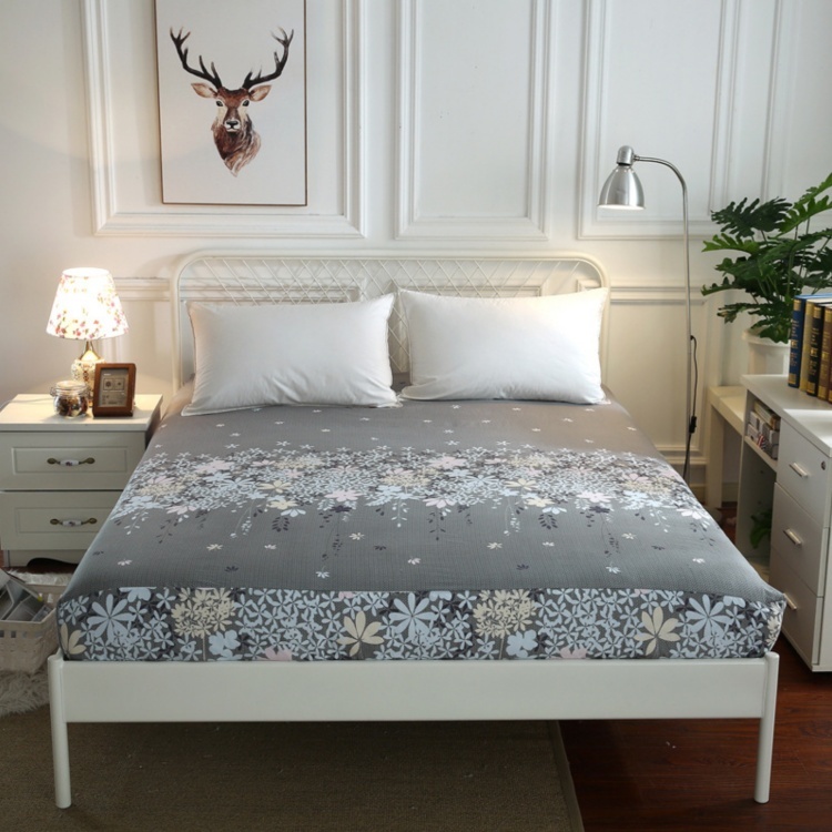 - 送料無料★新品 ベッドシーツ ボックスシーツ マットレスカバー 寝具 新生活応援 新生活 学生 新社会人 120×200cm ★フラワーグレー
