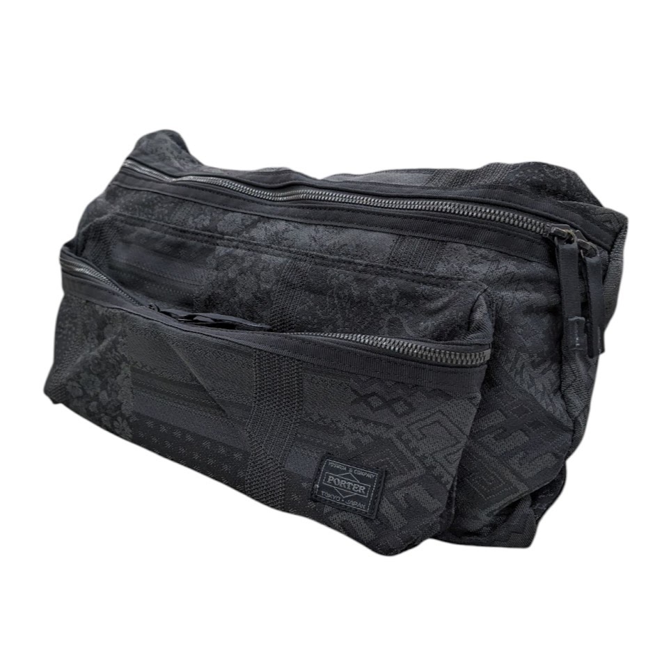 - 22 PORTER VERVE WAIST BAG ポーター ヴァーヴ ナイロン ウエストバッグ ショルダー ブラック ゴブラン織り
