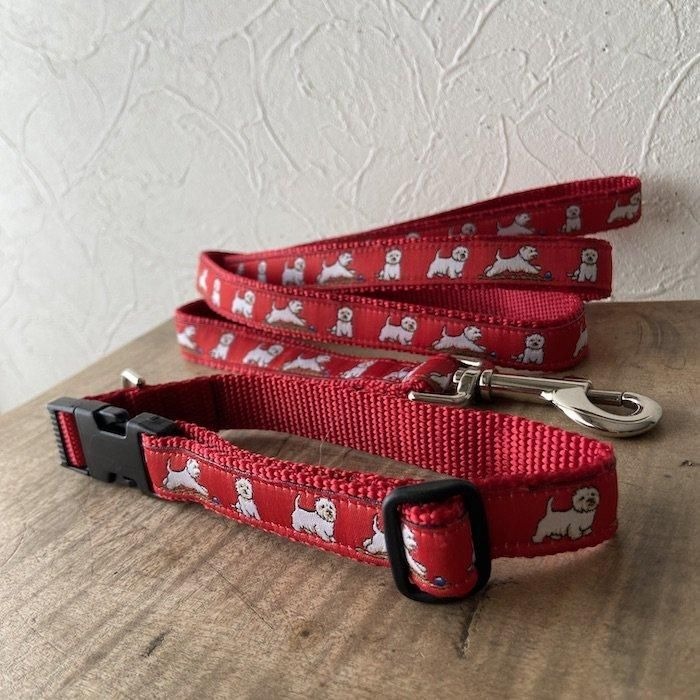 - ウエストハイランドホワイトテリア 首輪&リードのセット・レッド アメリカ製 ウエスティ