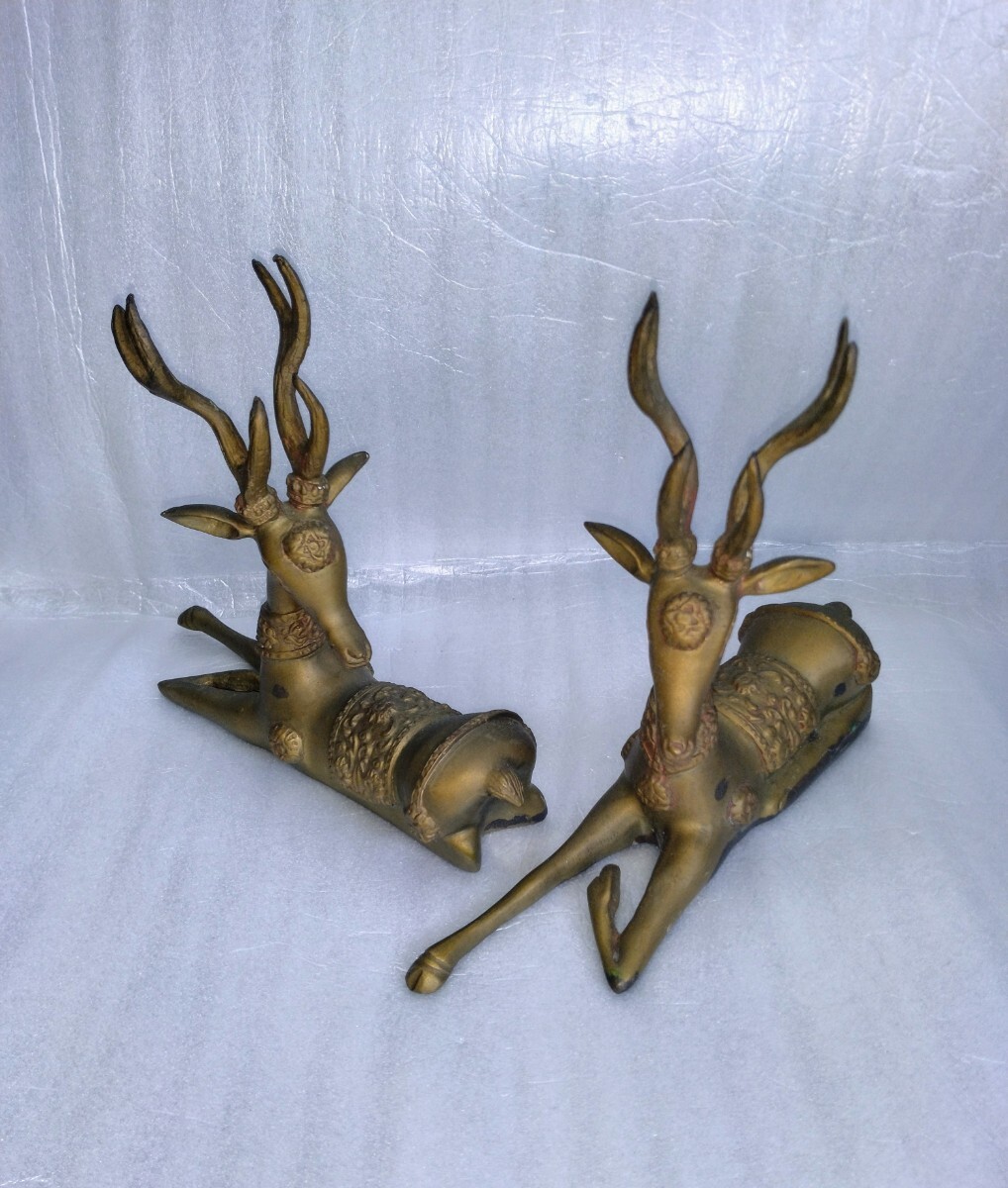 - K247②アンティーク鹿の置物 ヴィンテージ鹿の像 鹿の真鍮彫刻 2体(1対) ペア