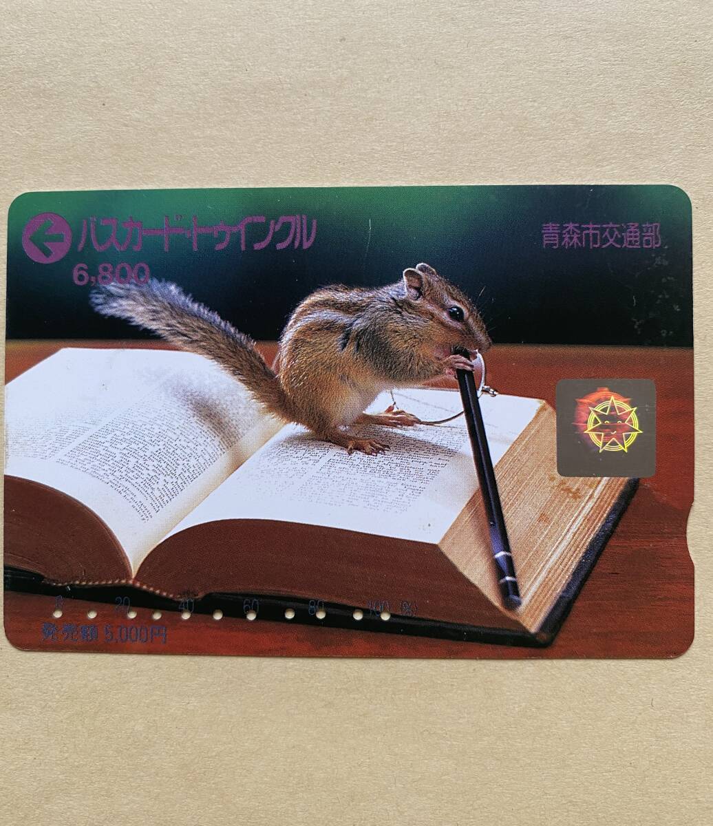 - 【使用済】 バスカード・トウィンクル 青森市交通部 戯れるリス
