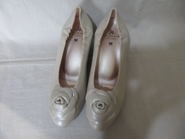 - ☆未使用 ワコール success walk wacoal サクセスウォーク フラワーモチーフパンプス 24cm EE アイボリー レザー ウエッジソール WCN507☆