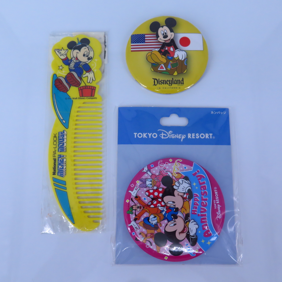- 597■定■未使用品 缶バッジ くし ミッキーマウス 3点セット 送料無料【検: Walt Disney レトロ 昭和 National 】