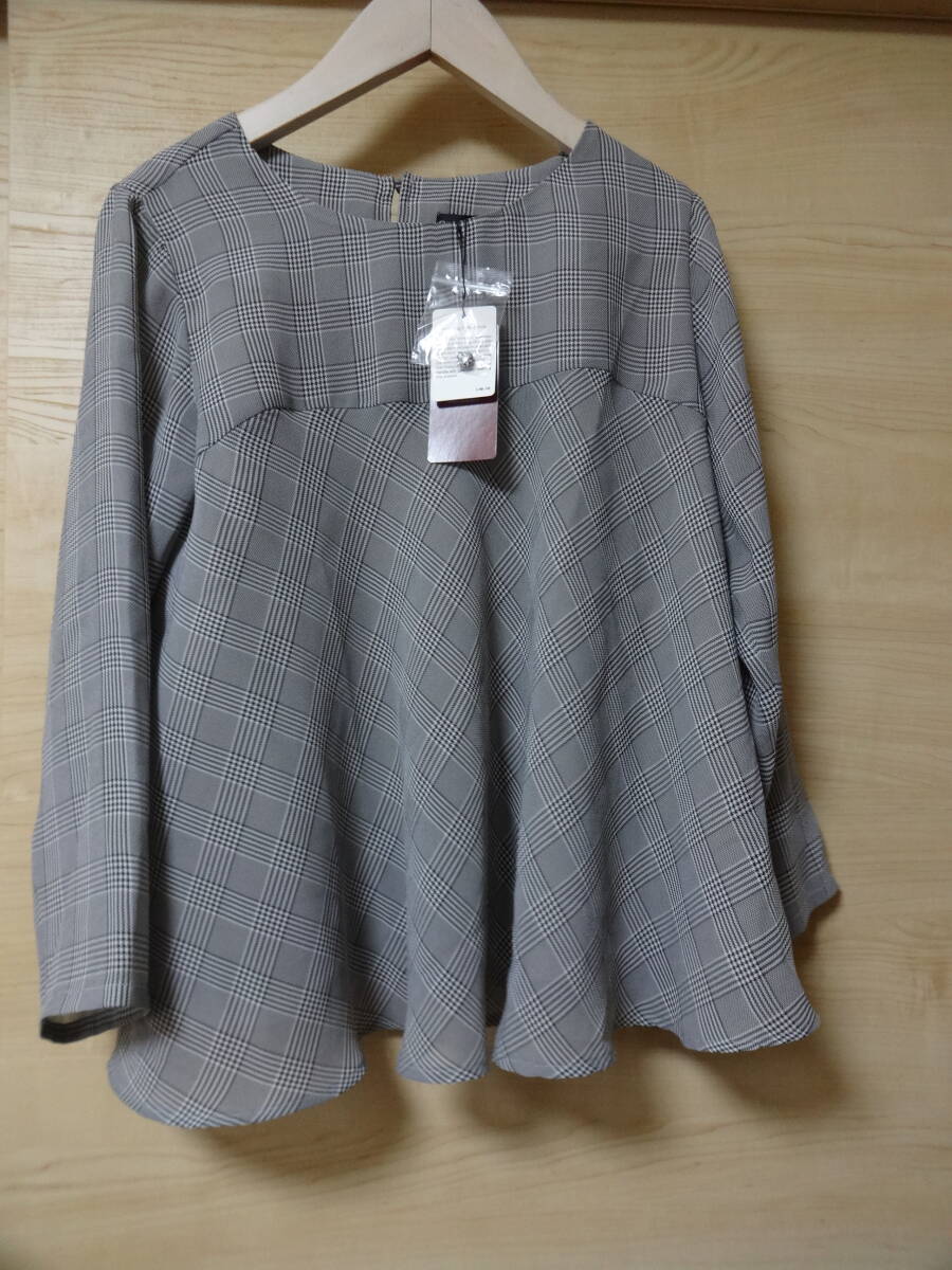 - URBAN RESEARCH チェックフレアブラウス サイズF R8479 未使用タグ付き グレー カットソー