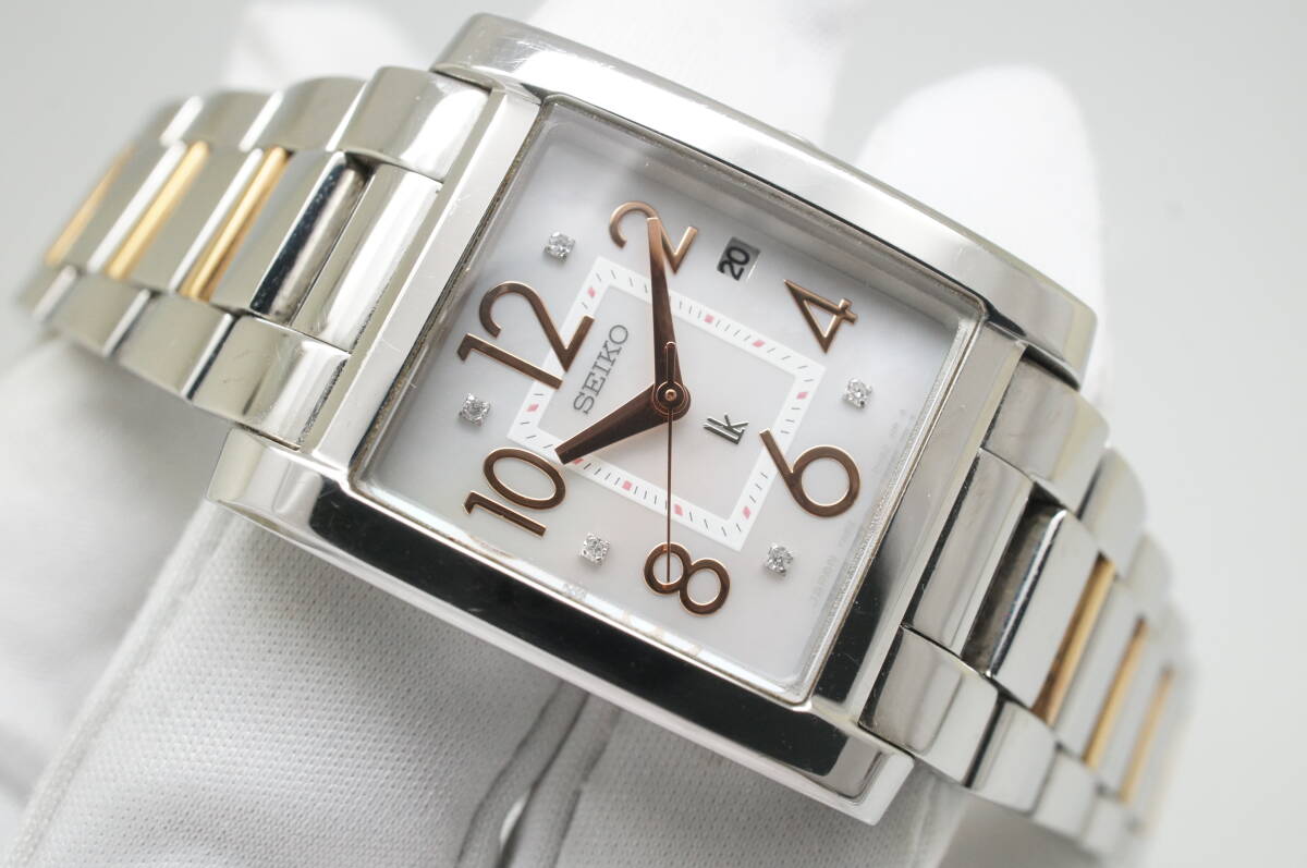 > G120●作動良好 SEIKO セイコー LUKIA lK ルキア 7N82-0DK0 スクエア型 デイト レディース腕時計 コンビ お洒落 クォーツ