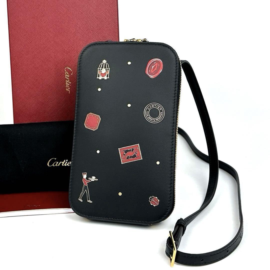 - 極美品 Cartier ディアボロ ドゥ カルティエ フォンケース ポーチ ショルダーバッグ 小物入れ マストライン パンサー スタンプ 黒 レザー