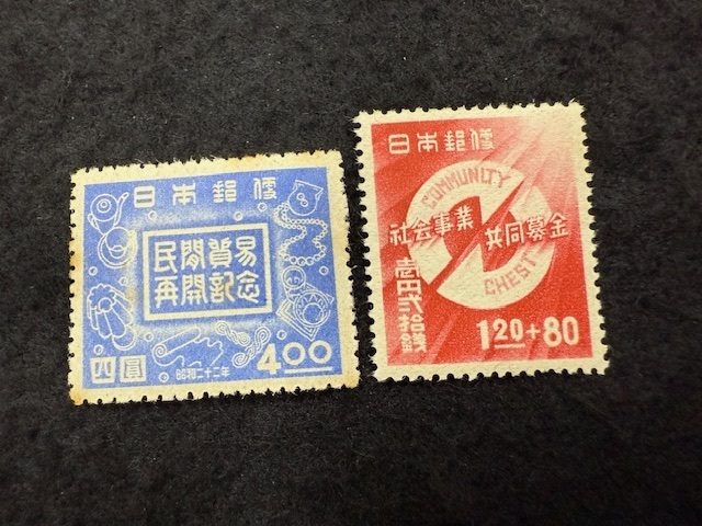 - 88、日本切手 民間貿易再開・共同募金 各1枚 未使用