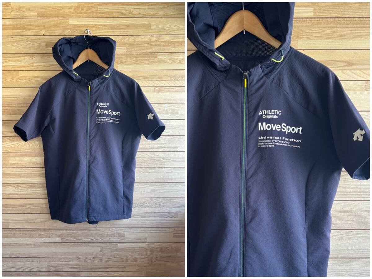 - #★小さめ L★M くらい★訳あり★DESCENTE デサント MOVE SPORT ムーブスポーツ クーリング -3℃ 半袖 パーカー ジャケット ネイビー 紺