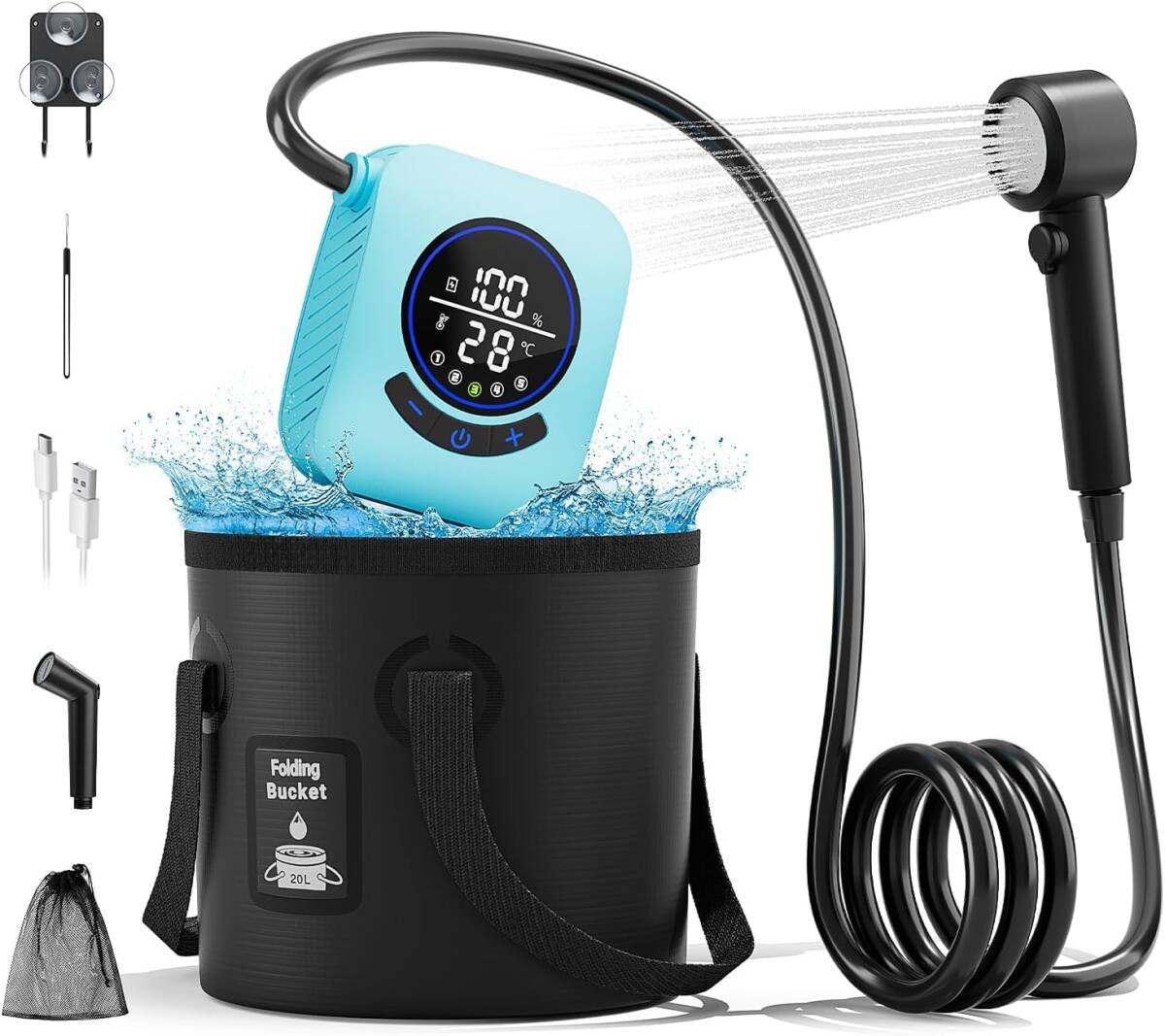 - どこでも清潔 持ち運べるマイシャワー生活 ポータブルシャワー キャンプ 電動シャワー ポンプ 8000mAh充電式