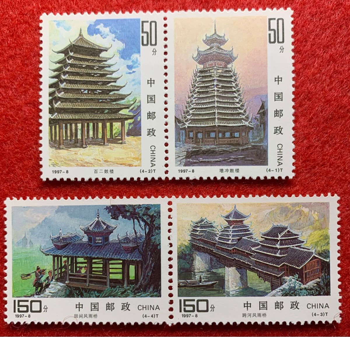 - 中国切手 未使用 1997年 1997ー8/トン族の建築/4種完/NH