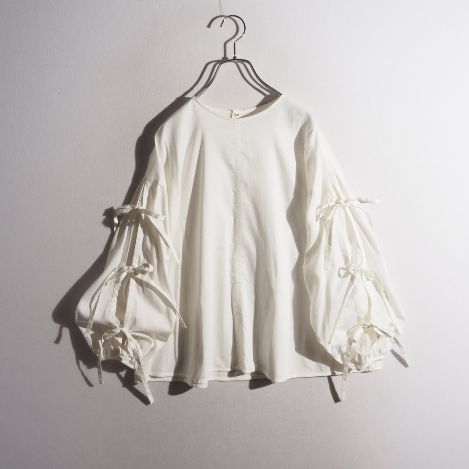 > K3828f14 ▼Drawer ドゥロワー▼ コットンシルク リボンスリーブ ブラウス ホワイト 36 オーバーサイズ 6521-299-0960 シャツ 春夏 rb mks