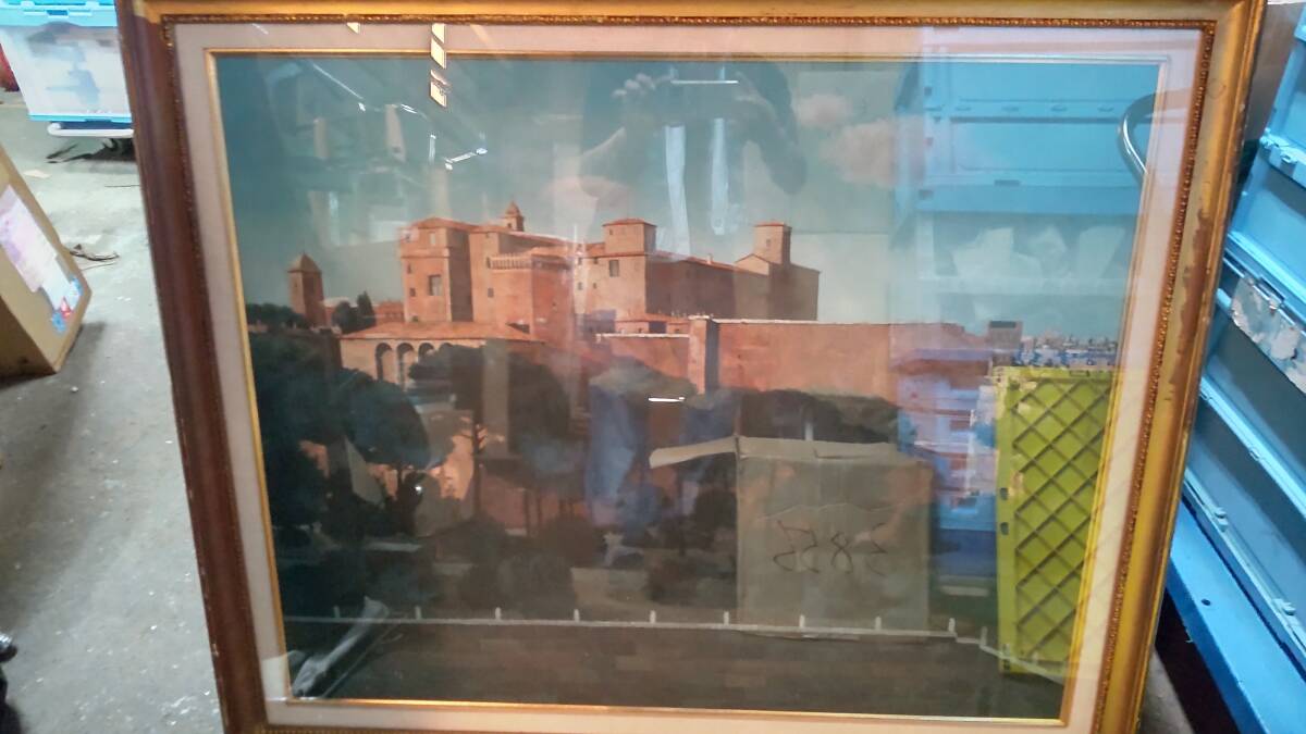 - 【G064】真作 藤飯治平『 松のあるローマの風景 』 30号 油彩 証明シール 直筆サイン 大判 額装