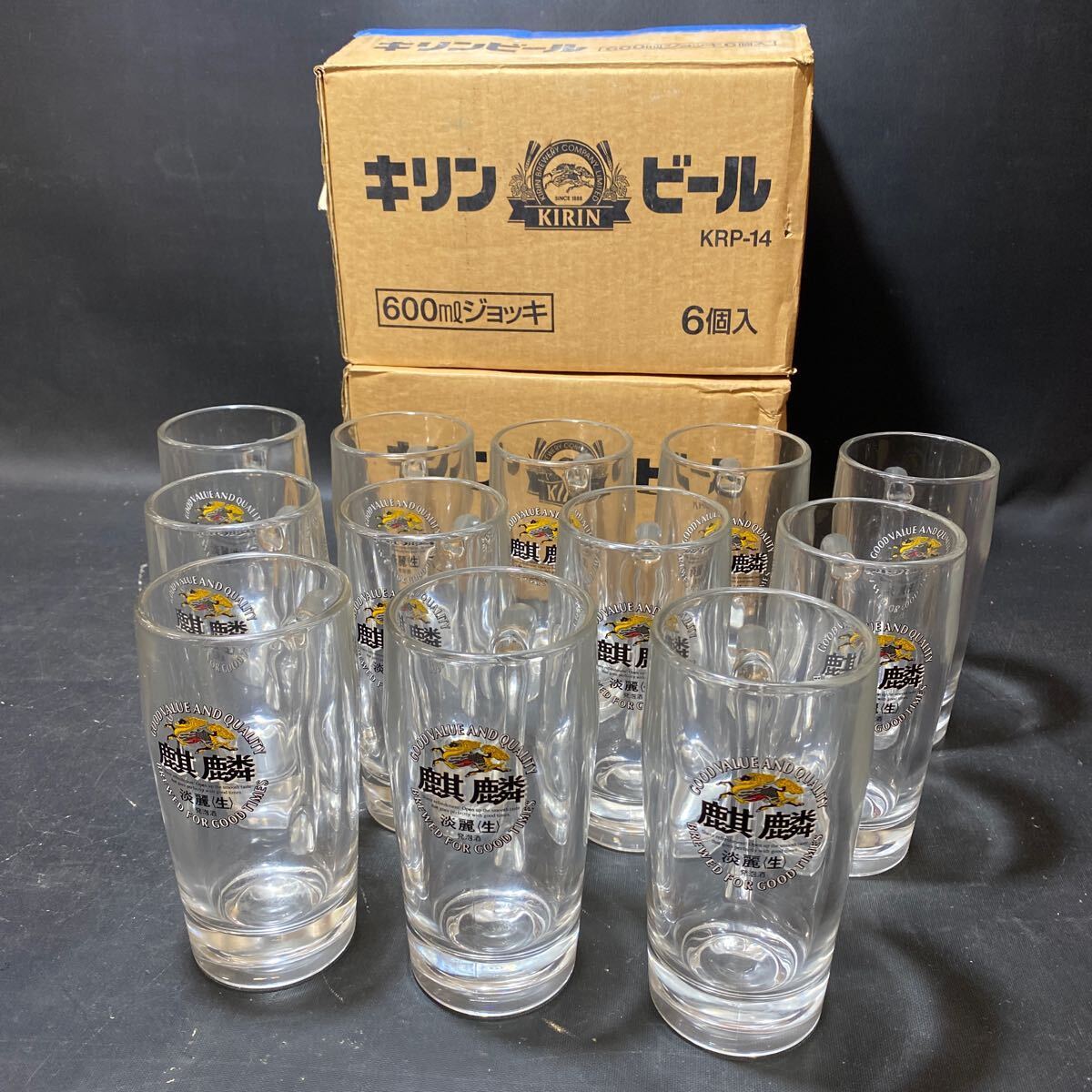 - N 6289 [ KIRIN 麒麟淡麗(生)ビールジョッキ 600ml 12個まとめて! ] 生大 キリン ビアジョッキ 生ビール 箱入り ビアガーデン 保管品