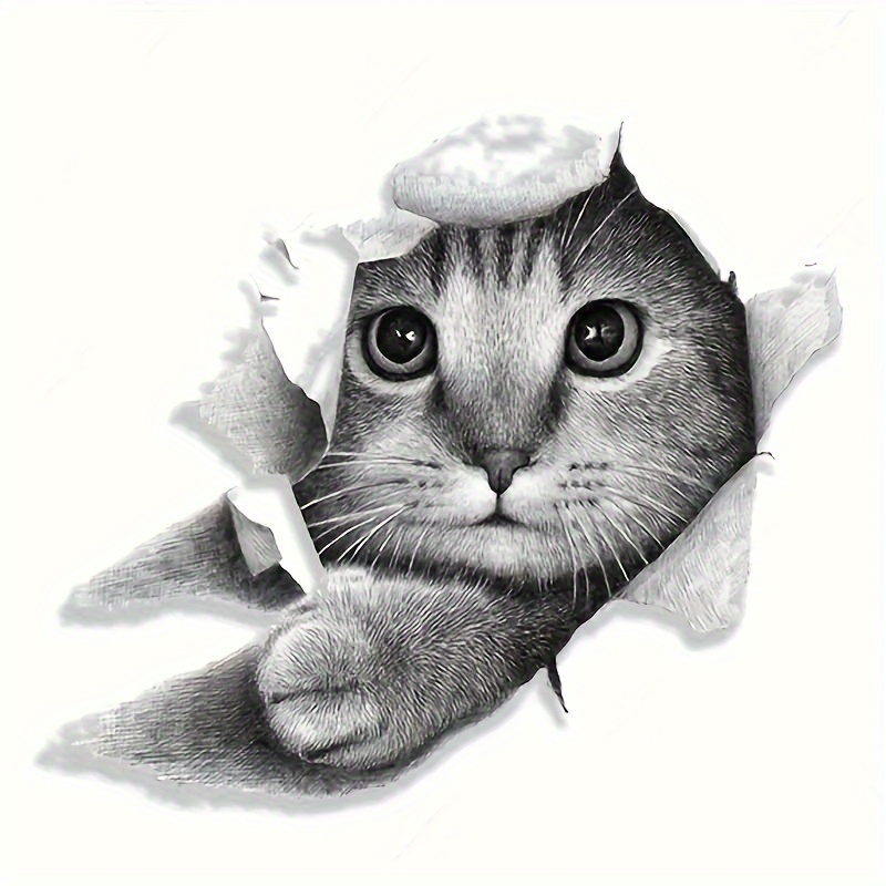 - ステッカー 壁穴から覗くねこ グレー 14cm サバトラ 猫 ネコ 防水 シール ビニール素材 貼り付け 車用 バイク用 窓用 ノートパソコン t7493