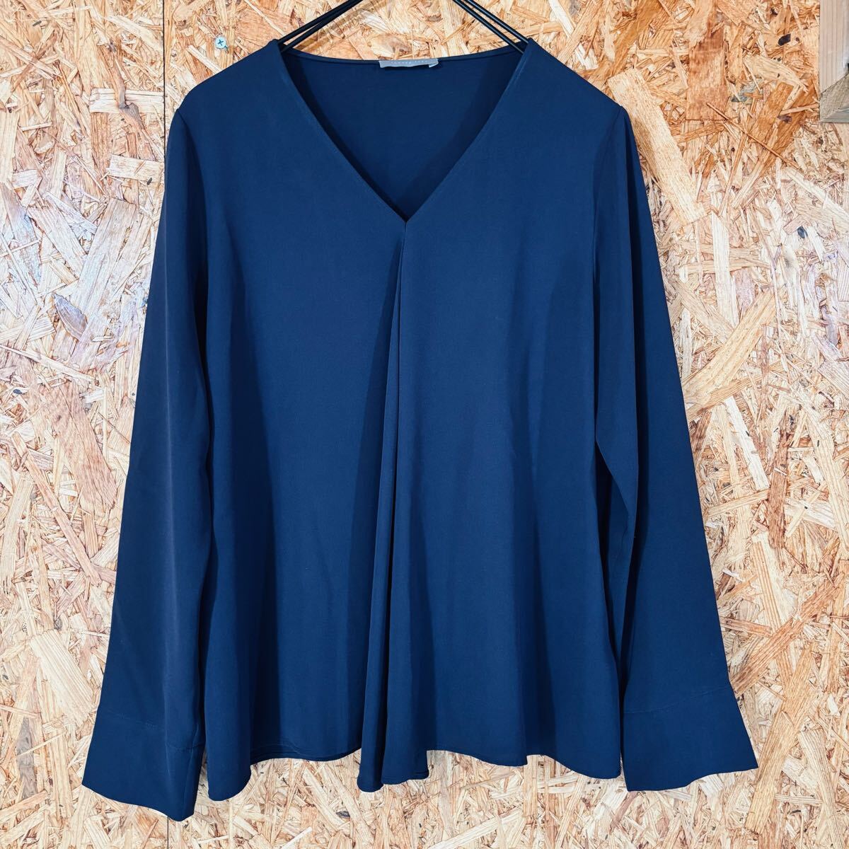 - 美品 theory 長袖 カットソー 薄手 Vネックカットソー ネイビー 無地 長袖カットソー レディース トップス 4786