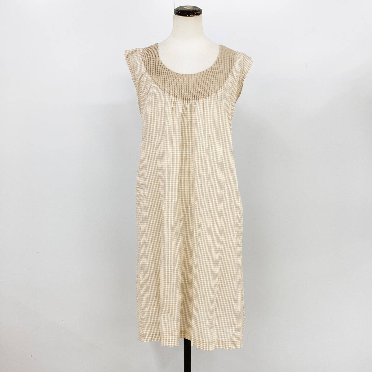 - ISSEY MIYAKE me イッセイミヤケ ワンピース ノースリーブ MI21FT532 コットン ベージュ チェック