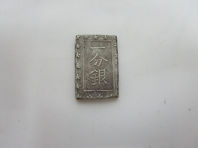 - 古銭祭 ① 天保一分銀 量目8.6g 縦23.09mm 横15.29mm 日本貨幣 銀貨 アンティーク コレクション 蔵出し