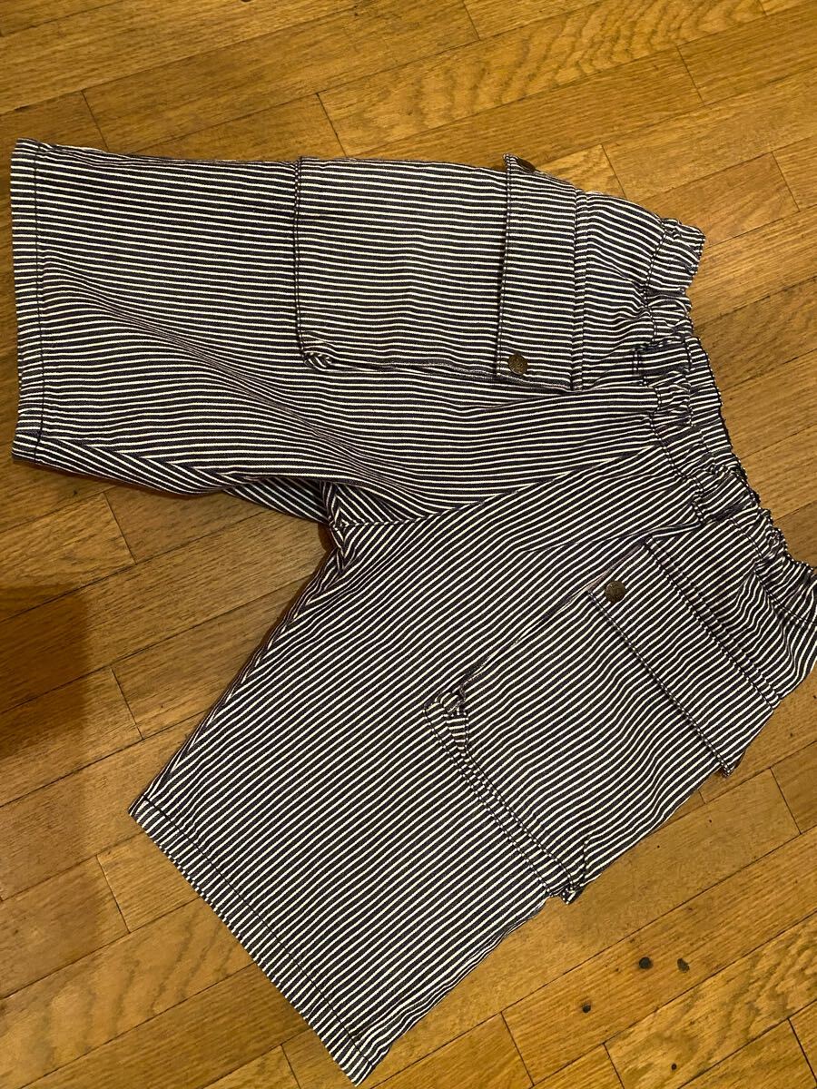 - ヒッコリーストライプデニムジーンズパンツハーフショートベイカーブッシュワークカーゴペインター小さいサイズ