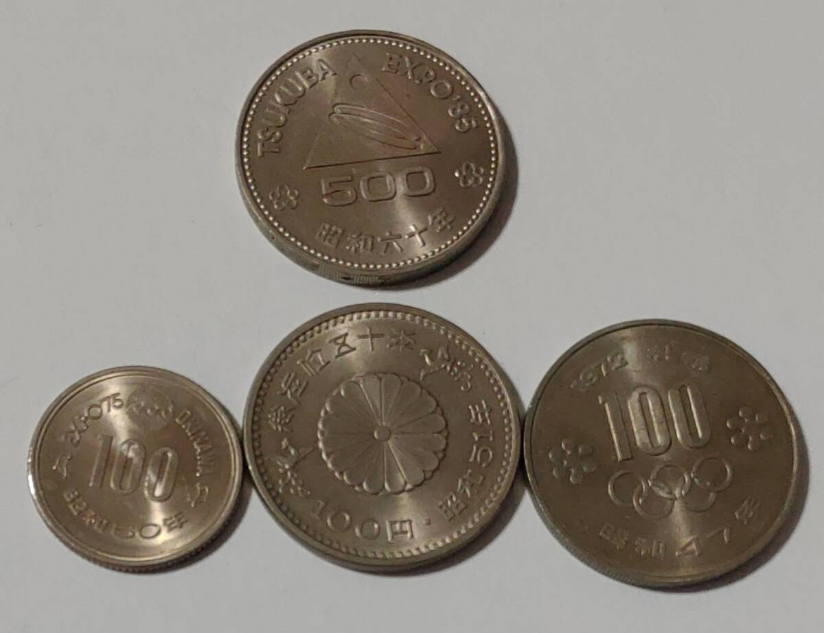 - 記念硬貨 4枚セット つくば万博 500円 札幌オリンピック 100円 在位50年 100円 沖縄万博 100円 古銭