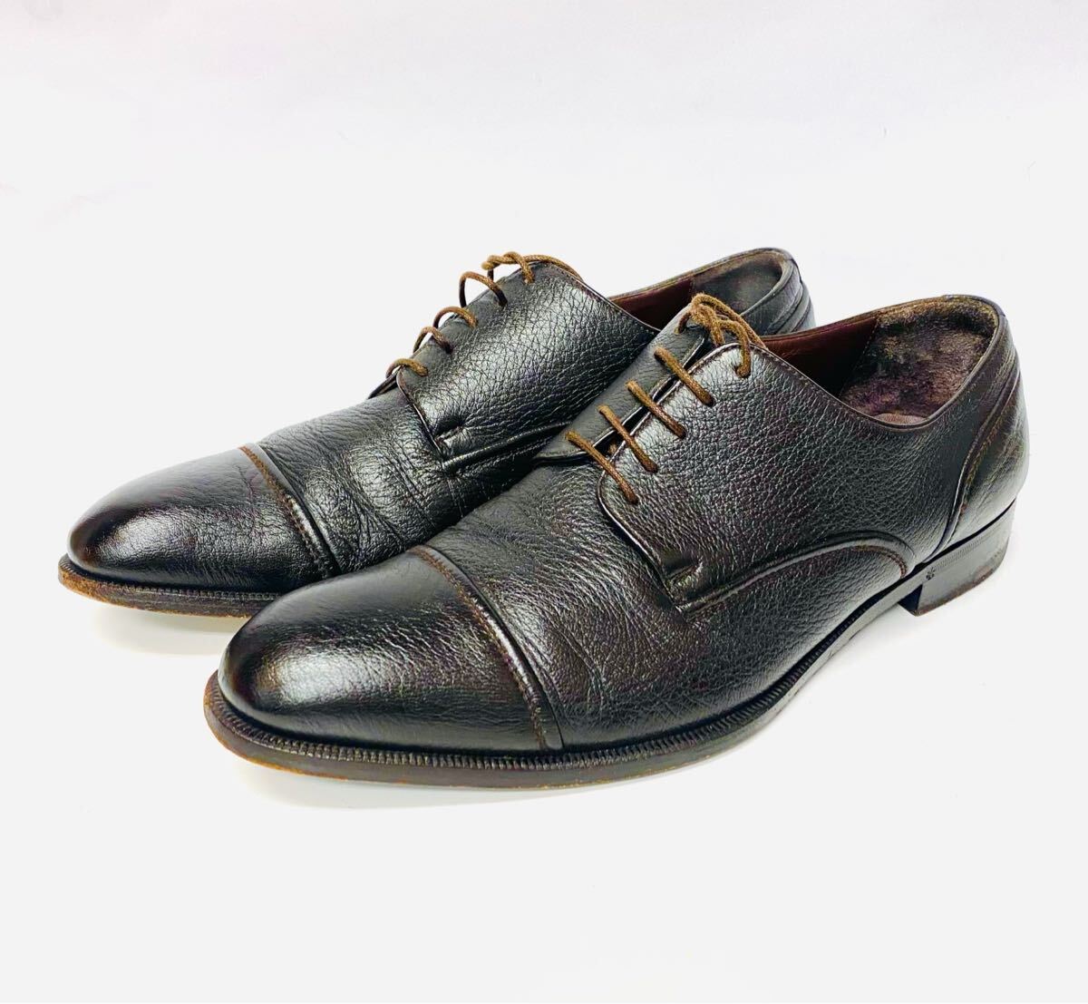 > 美品 Ermenegildo Zegna エルメネジルドゼニア レザーシューズ 革靴 シボ革 ダークブラウン EU8/27cm