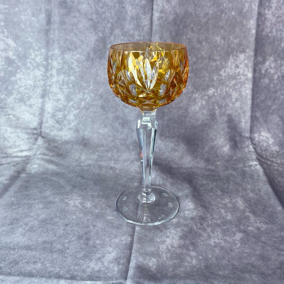 - ドレスデン 高級クリスタルガラス LAUSITZER GLAS ワイングラス 東ドイツ クリスタルガラス 吹きガラス イエロー 黄被せ ワイングラス 切子