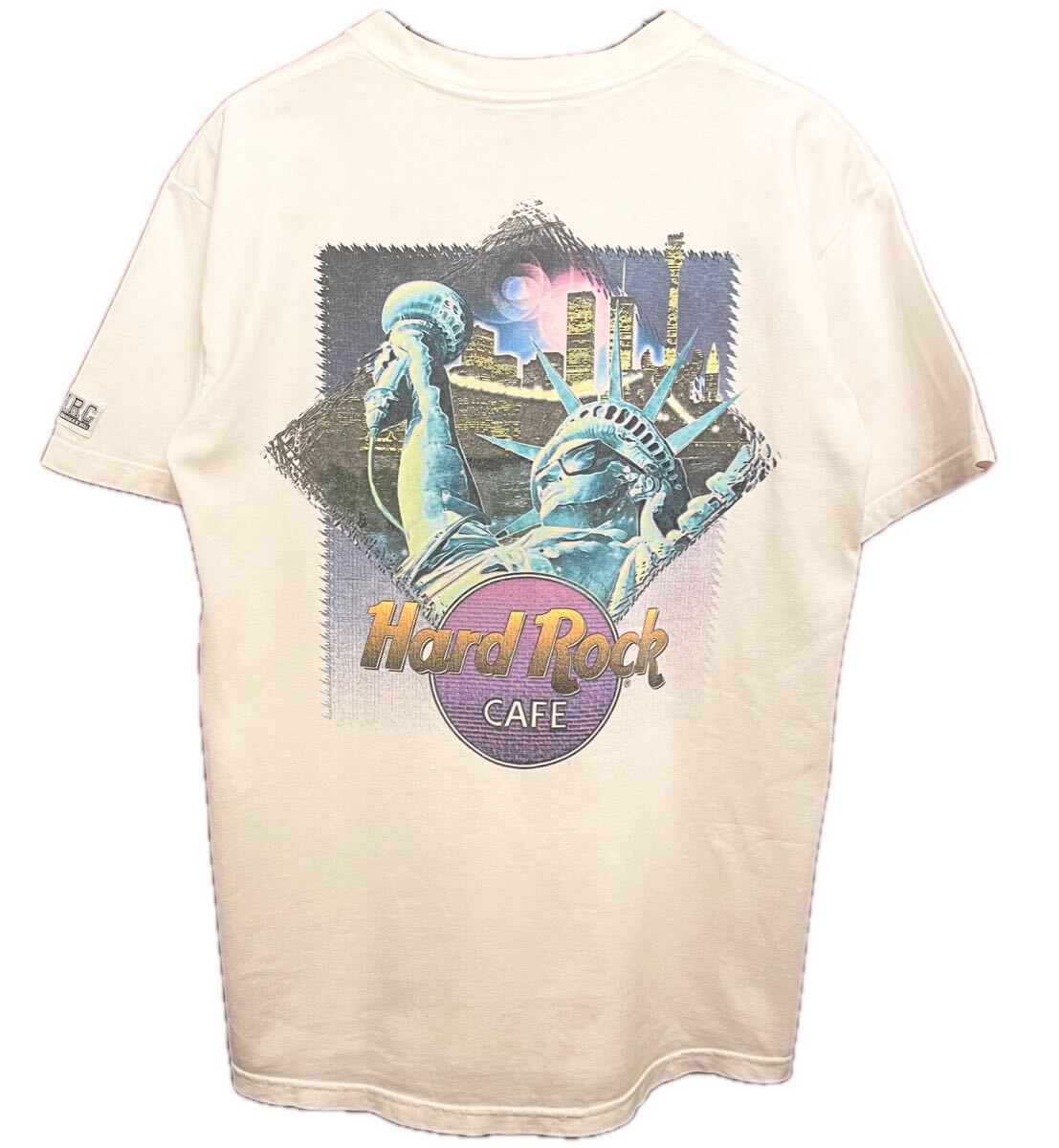 > 希少 MADE IN USA製 90s Hard Rock CAFE NEW YORK HEAVY TEE バックプリントTシャツ ホワイト Mサイズ ハードロックカフェ アメリカ製 白