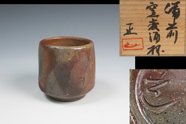 - 正宗悟 作 備前窯変酒盃 ぐいのみ 共箱 酒器 保証品◆12839YI