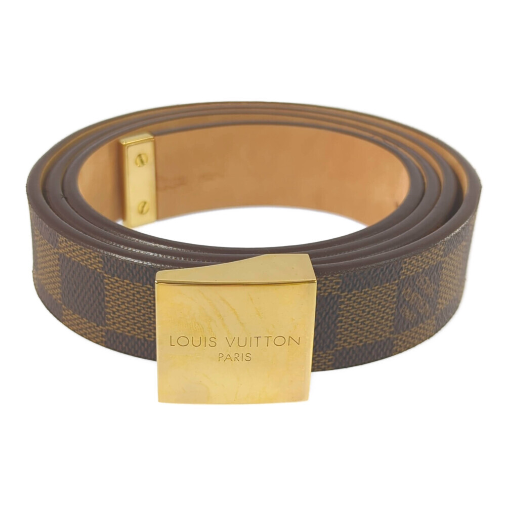 - LOUIS VUITTON ルイヴィトン ダミエ・サンチュールキャレ レザーベルト/M6802/ブラウン/ゴールド金具/ドレスベルト■585328