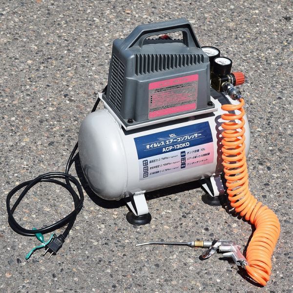 - 【新潟発】高儀 10Lオイルレスコンプレッサー ACP-130KD エアホース エアーガン 付き 充填確認済み 清掃 空気入れ エアーツール 工具 中古