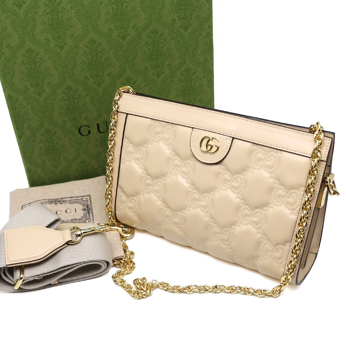 > 中古品 グッチ GGマトラッセ ショルダーバッグ レザー ベージュ ゴールド金具 チェーンショルダー 702200